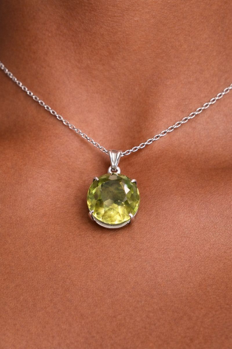 | Select Item | Sterling Silver Oval Green Quartz Pendant – SPE017 |